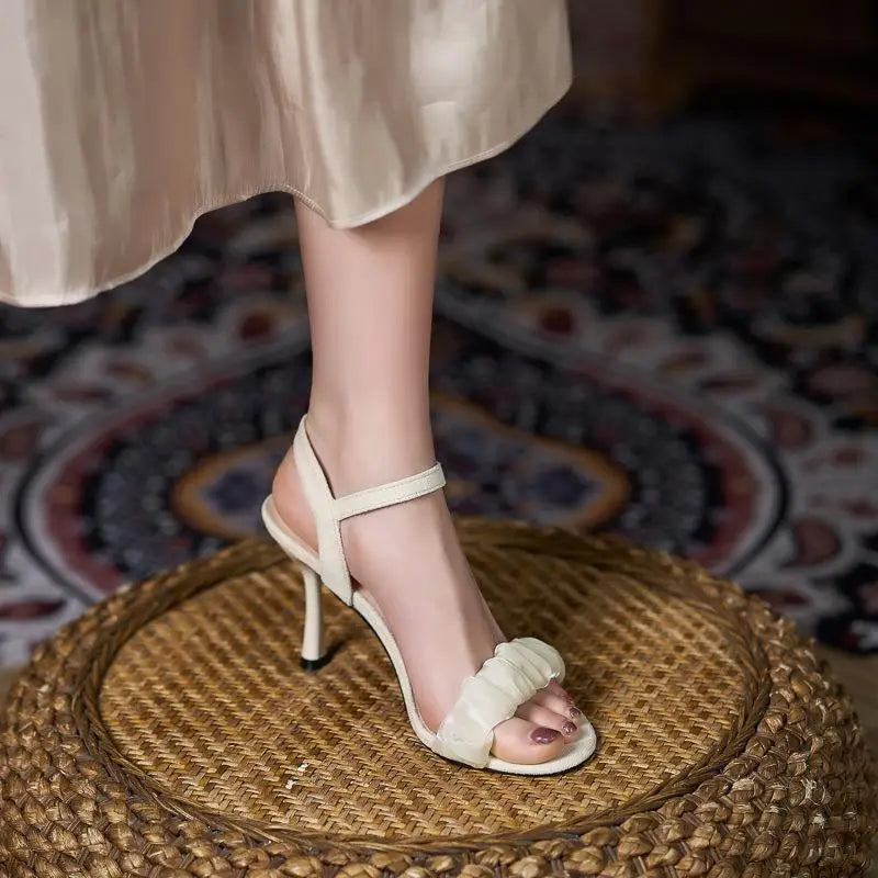 31-43 New High Heels Thin Heel Large Size Buckle Sandals Women Ribbon Fashion Black Women's Shoes