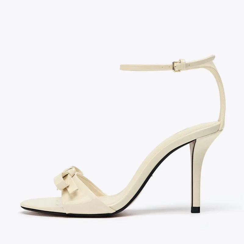Beige Bow Designer Shoes Ankle Strap Heeled Sandals Women Elegant Patent Leather Thin High Heels Party Shoes Sandalias De Mujer