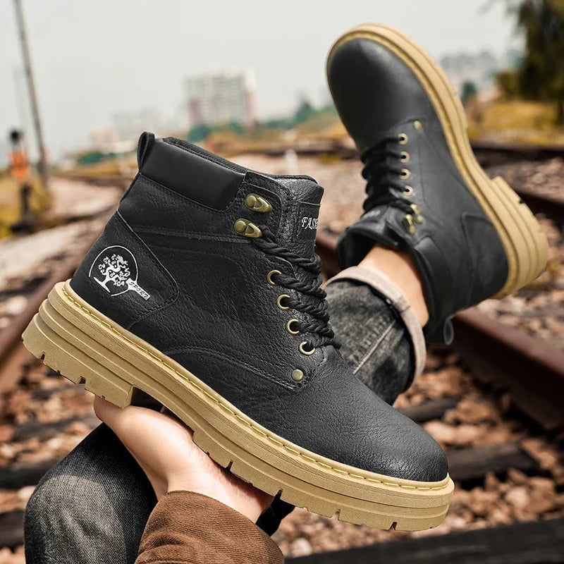Brand Black Men's Motorcycle Boots Platform Work Boots Man Street Outdoor Biker Shoes Men Leather Ankle Boots for Men Casual