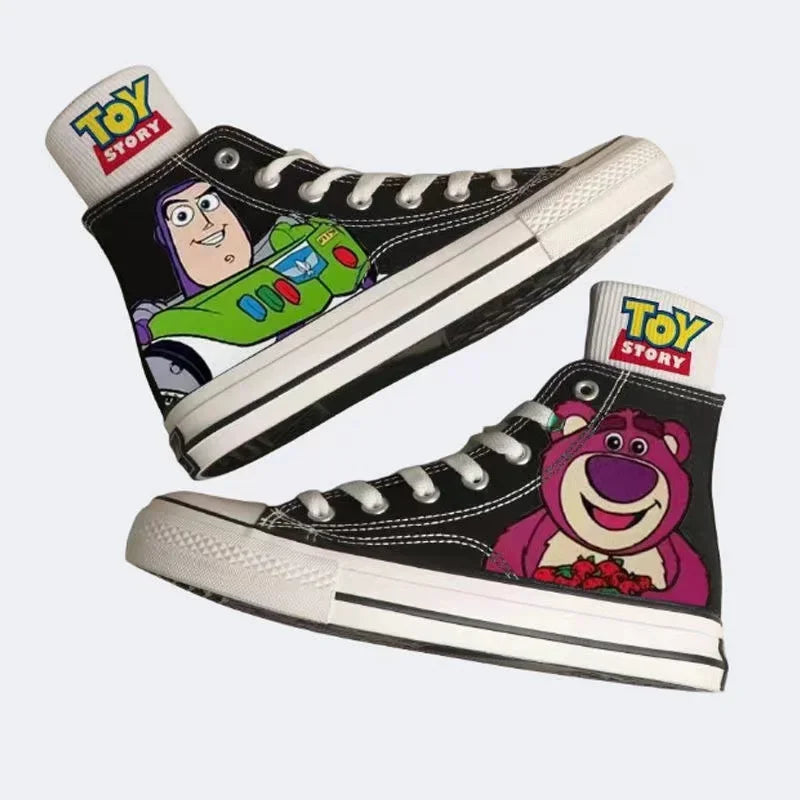 Buzz Lightyear Woody Lotso new plus size High Top Canvas Shoes Man Sneakers 2025 autumn Student Cartoon women girl Casual Shoes