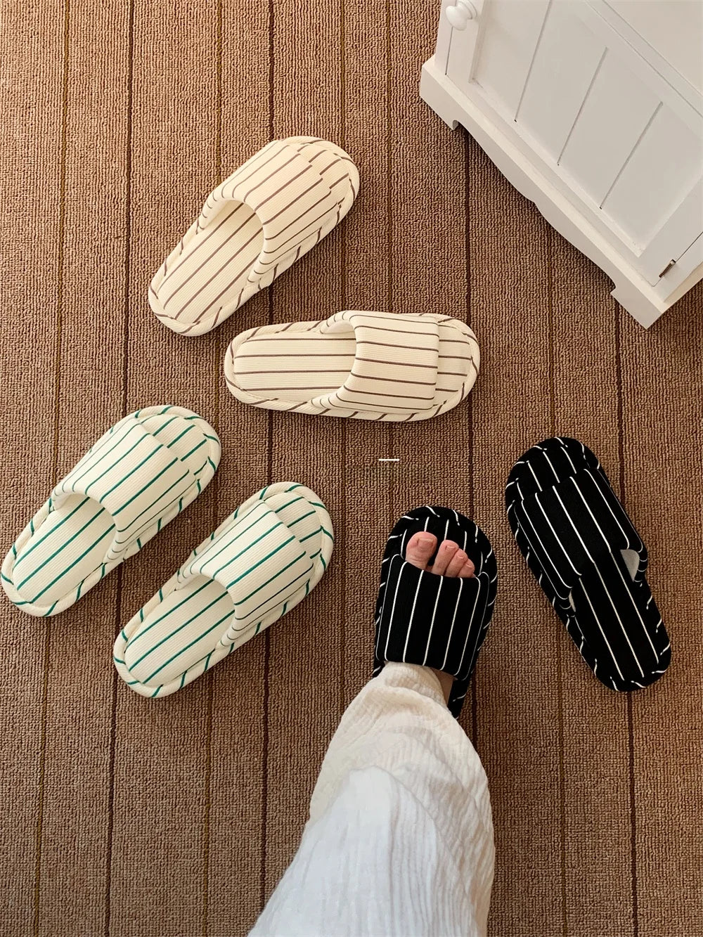 Comfortable Cotton Linen Slippers Women Stripe Design Soft Floor Shoes Four Seasons