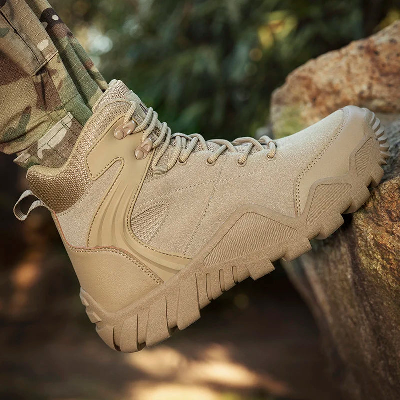 High-top Boots Men Outdoor Thick-soled Shock-absorbing Combat Boots Men Soft Durable Casual Lace-up Comfortable Hiking Shoes Men
