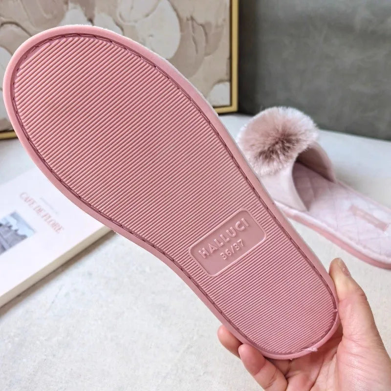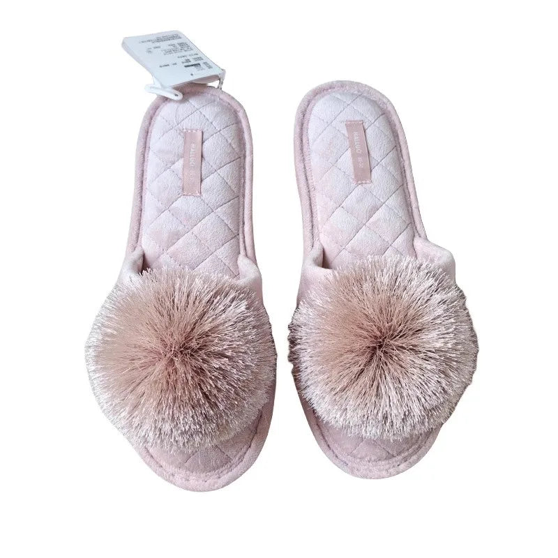 New Winter Open Toe Slipper Fashion Fur Thick Sole Flats Heel Ladies Casual Slip On Bedroom Shoes Soft Outdoor Slides Shoes