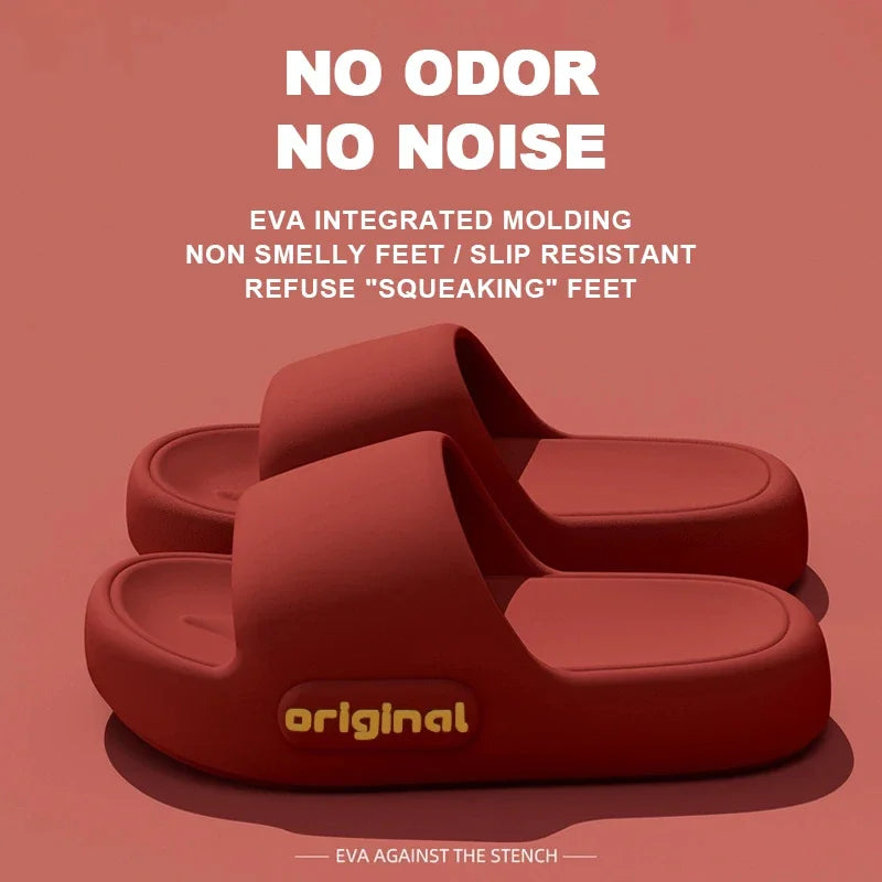 New Women Comfy Solid Color Soft Sole Slip Beach Flip Flops Summer Platform Cloud Slippers EVA Pillow Slides Woman Couple
