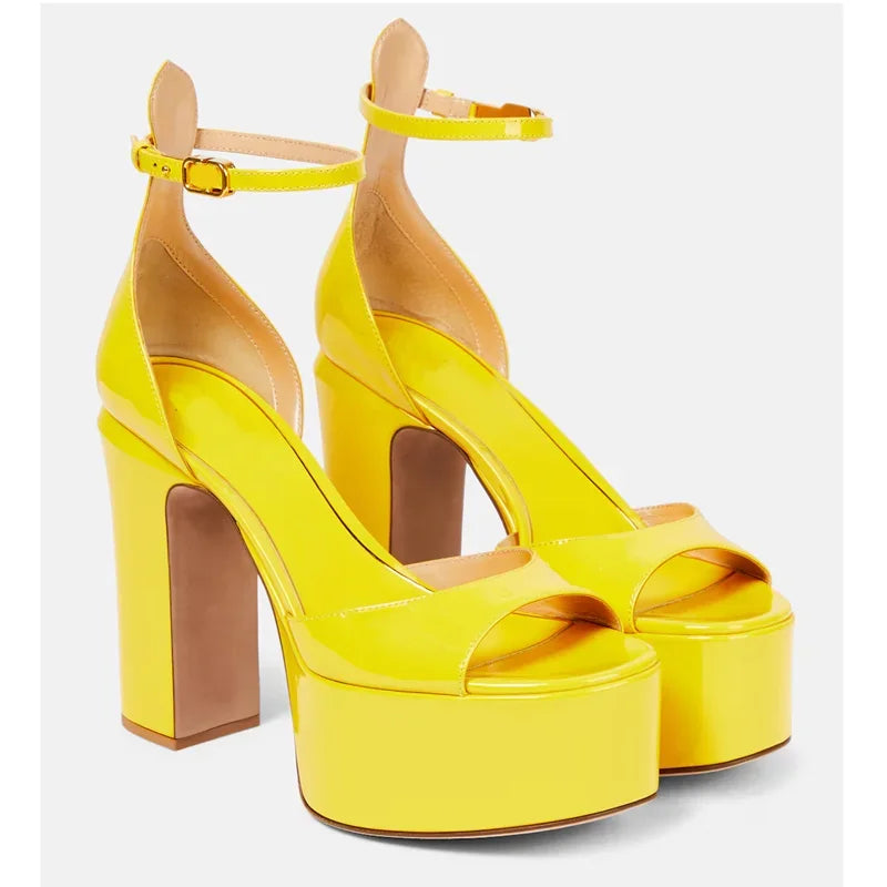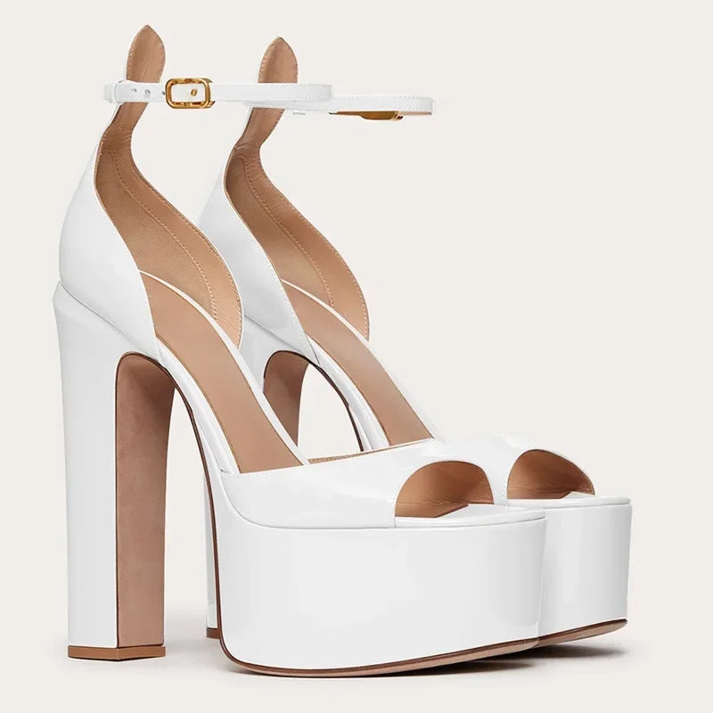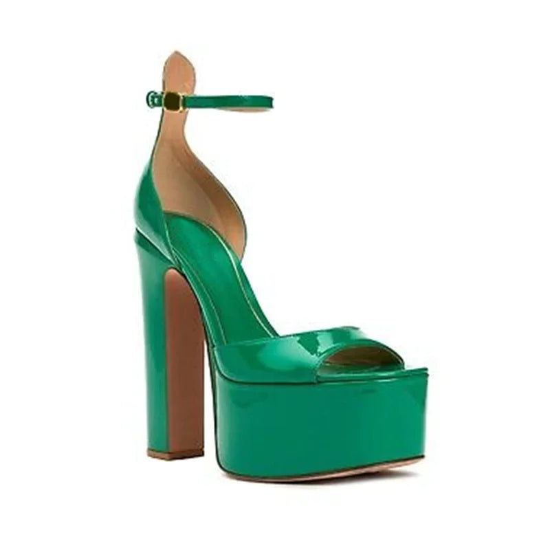 Platform Shallow Cover Heel Sandals Sexy Pointed Toe Ankle Buckle Belt Patent Leather New Arrivals Fashion Women Modern Shoes
