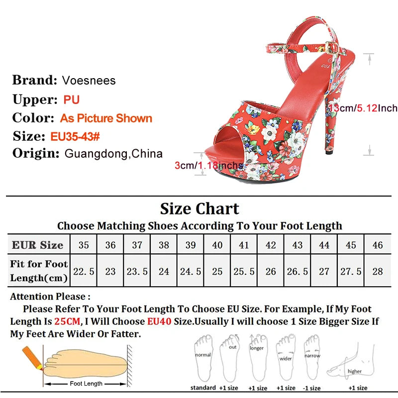 With Flower Print Women Summer Buckle Thick Platform Party Sandals 2025 New Fashion Model T Show Shoes 13CM 15CM 17CM High Heels